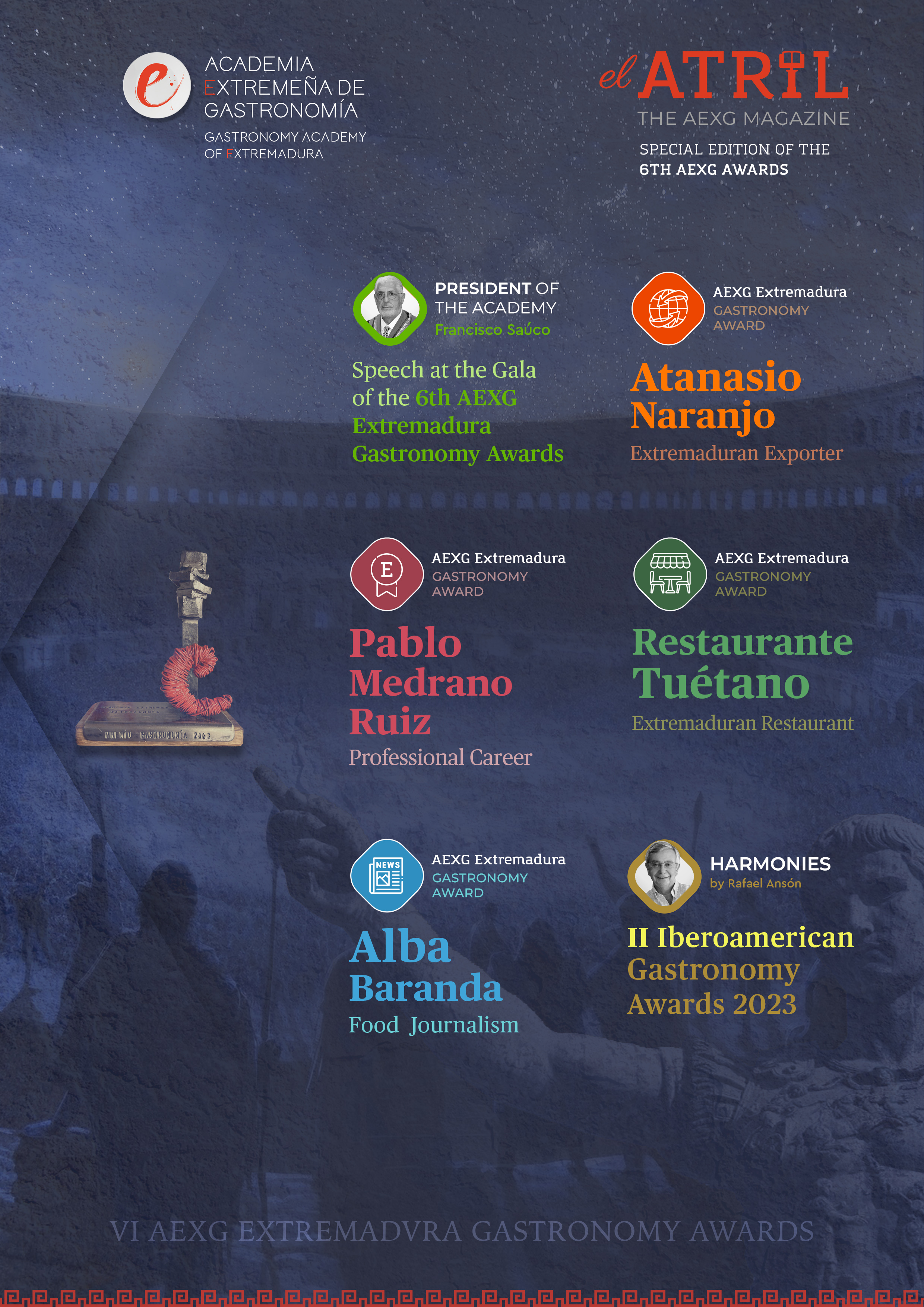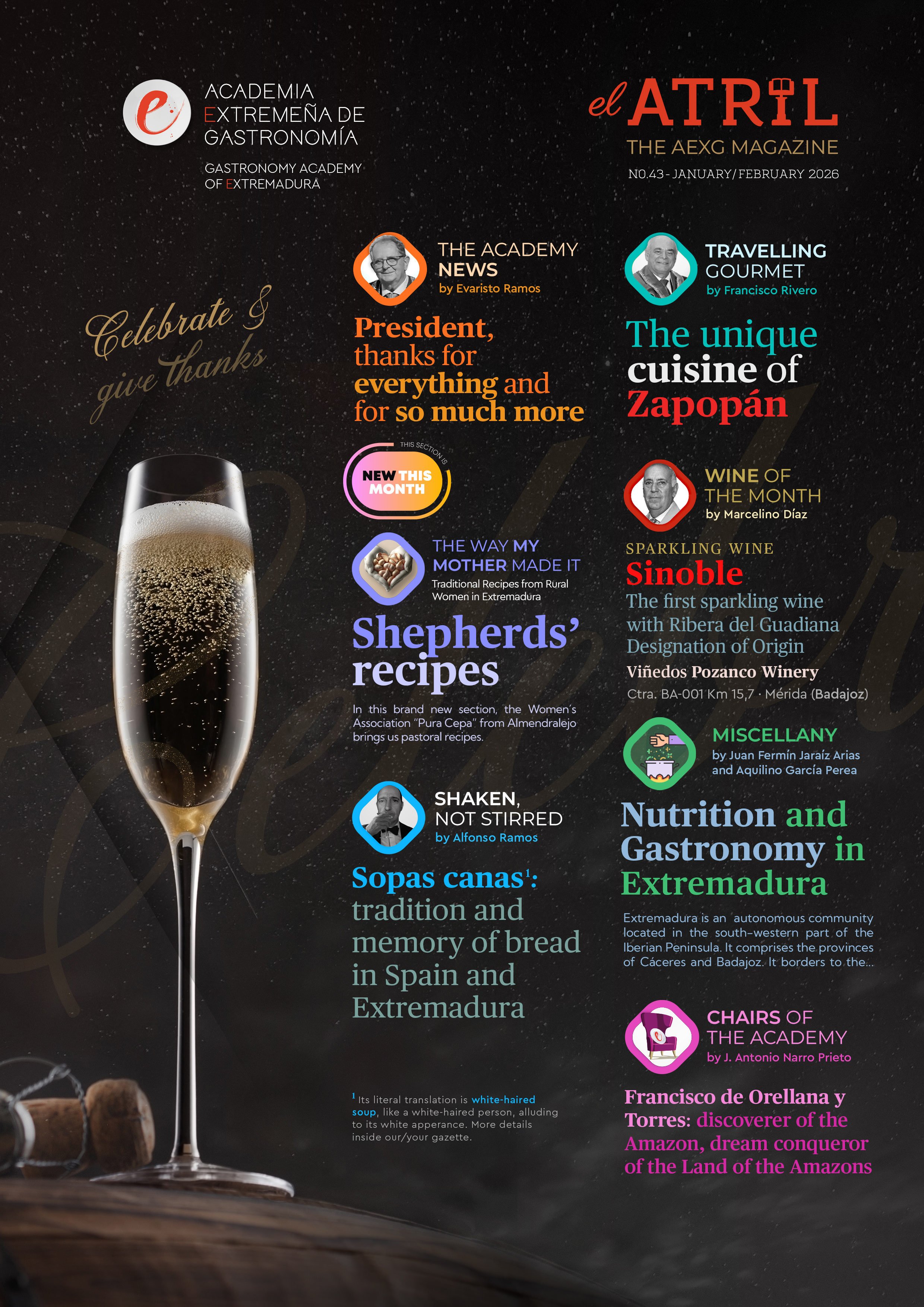 El Atril is the monthly gazette of the Extremadura Academy of Gastronomy in which we inform you about the projects we intend to undertake and which will occupy the day-to-day work of the Academy.